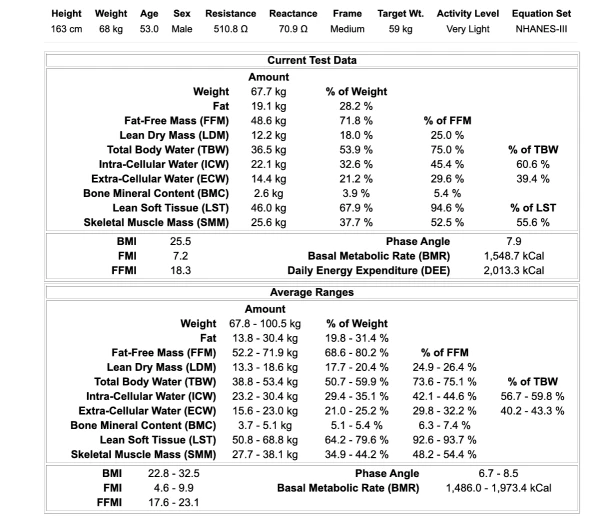 BIA provides a foundation by assessing cellular hydration, body composition, and metabolic balance. It helps us understand how well your cells are nourished, hydrated, and able to function—often revealing early signs of stress or imbalance at the cellular level.